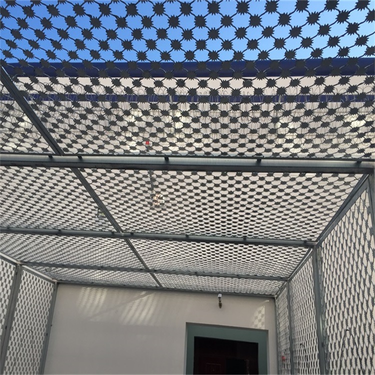 監(jiān)獄鋼網(wǎng)墻刀刃刺具有阻垢、防堵、翻轉(zhuǎn)等作用.材料堅(jiān)硬、強(qiáng)度高、張力高,設(shè)計(jì)獨(dú)特不適合接觸,具有良好的保護(hù)和隔離效果.監(jiān)獄圍墻網(wǎng)絡(luò)也具有結(jié)構(gòu)簡(jiǎn)單、經(jīng)濟(jì)實(shí)用的優(yōu)點(diǎn).材料: 監(jiān)獄網(wǎng)墻用低碳鋼線和鋁合金線.