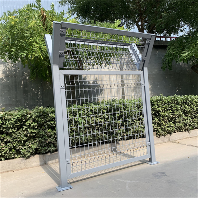 機場護欄網網孔:50mmX100mm,50mmX200mm。網片中帶有V型加強筋,可以增加圍網的防沖擊力。立柱為60X60的矩形鋼,頂端焊有V型之架?;蛘卟捎?0mmX100mm的掛式連接立柱。